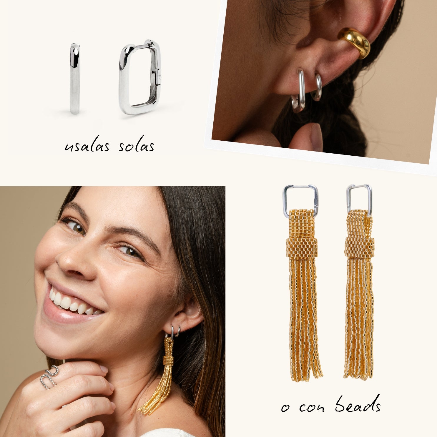 Una Jacket de beads que agrega color, movimiento y un toque más elegante a tus argollas Rhiannon.