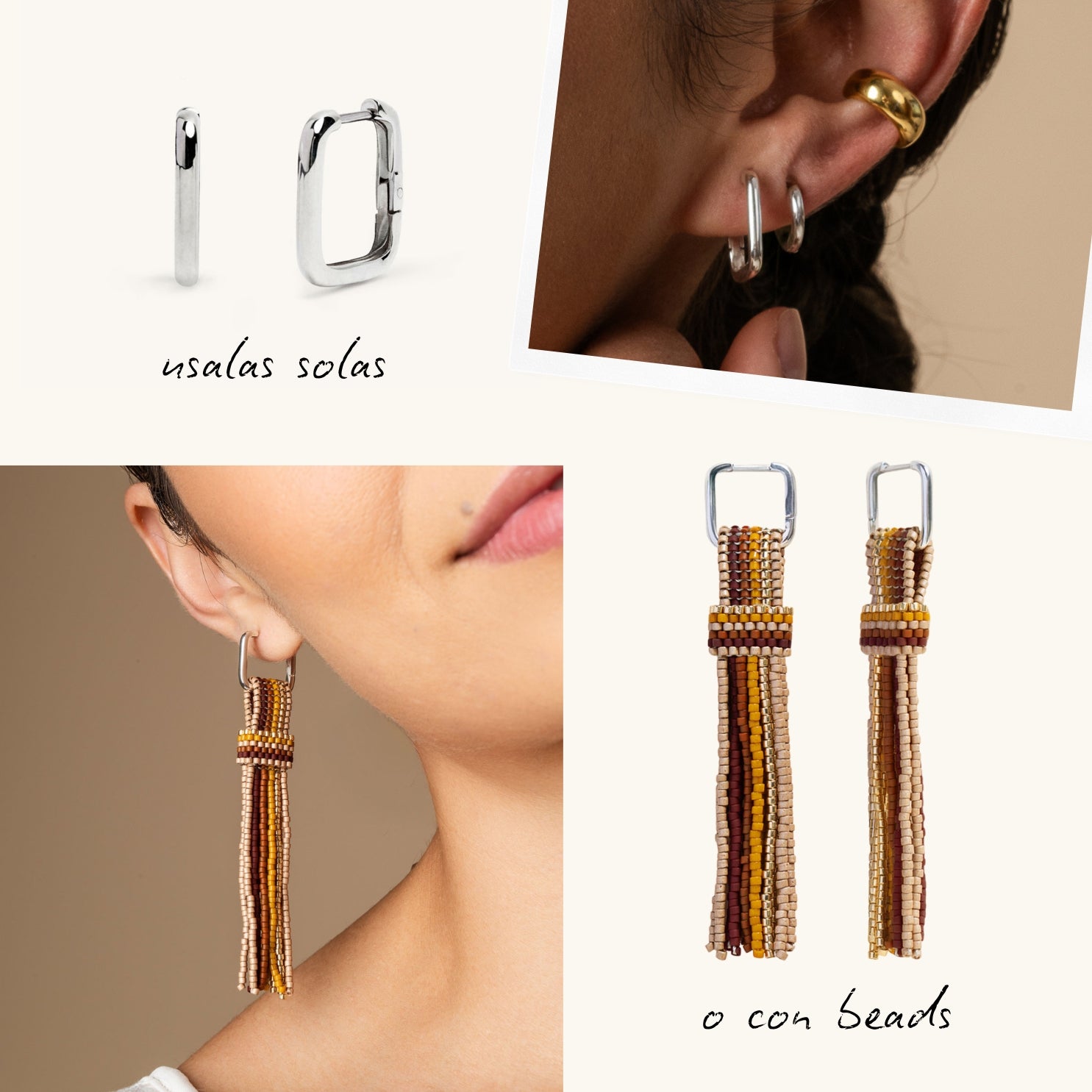 Una Jacket de beads que agrega color, movimiento y un toque más elegante a tus argollas Rhiannon.