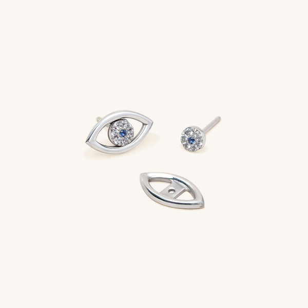 The only earrings that protect you and change with you. You can also wear the eye jackets with our 5mm Pearl Studs and our Pavé Studs.