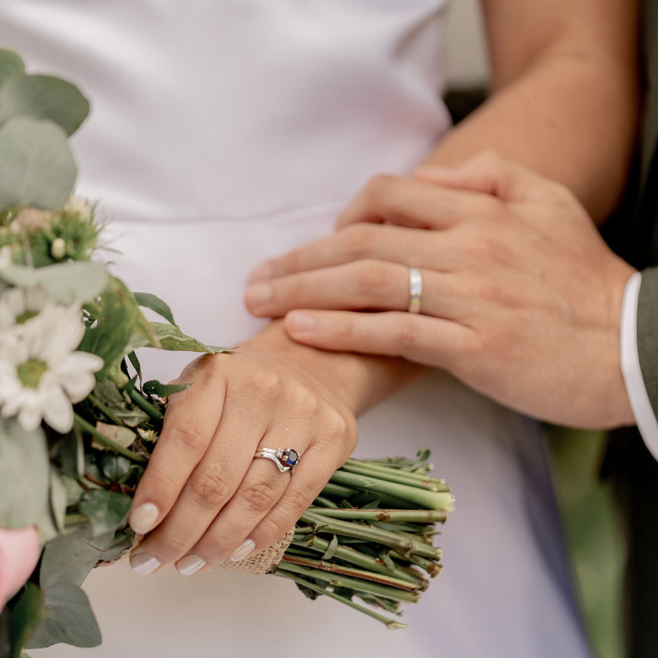 El anillo Paloma tiene una montura alta, lo que significa que la estructura que sostiene la piedra se encuentra sobre la banda. También podés solicitarlo con una montura baja, donde la piedra queda al ras del anillo. El precio no varía según la montura.
