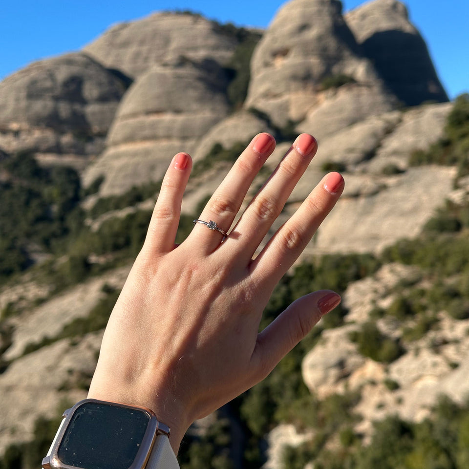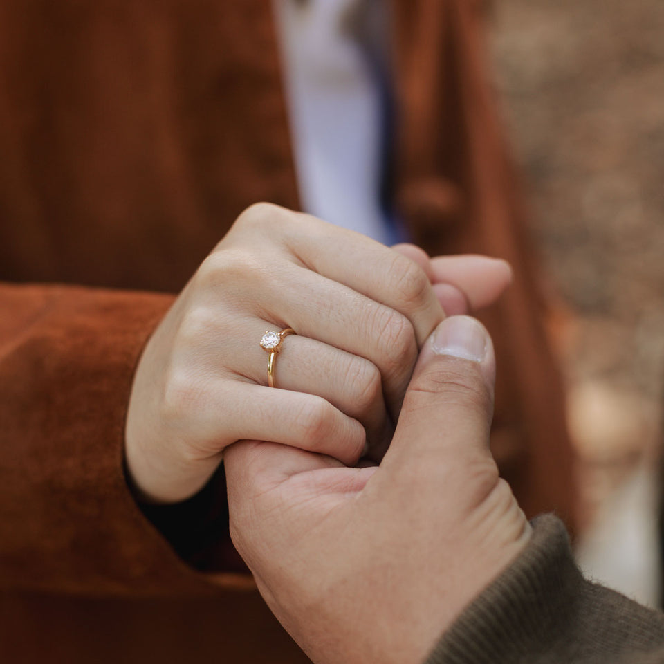 Producimos todos nuestros anillos solitarios de compromiso en oro amarillo y blanco de 18k. El precio de tu anillo no cambia según el color.